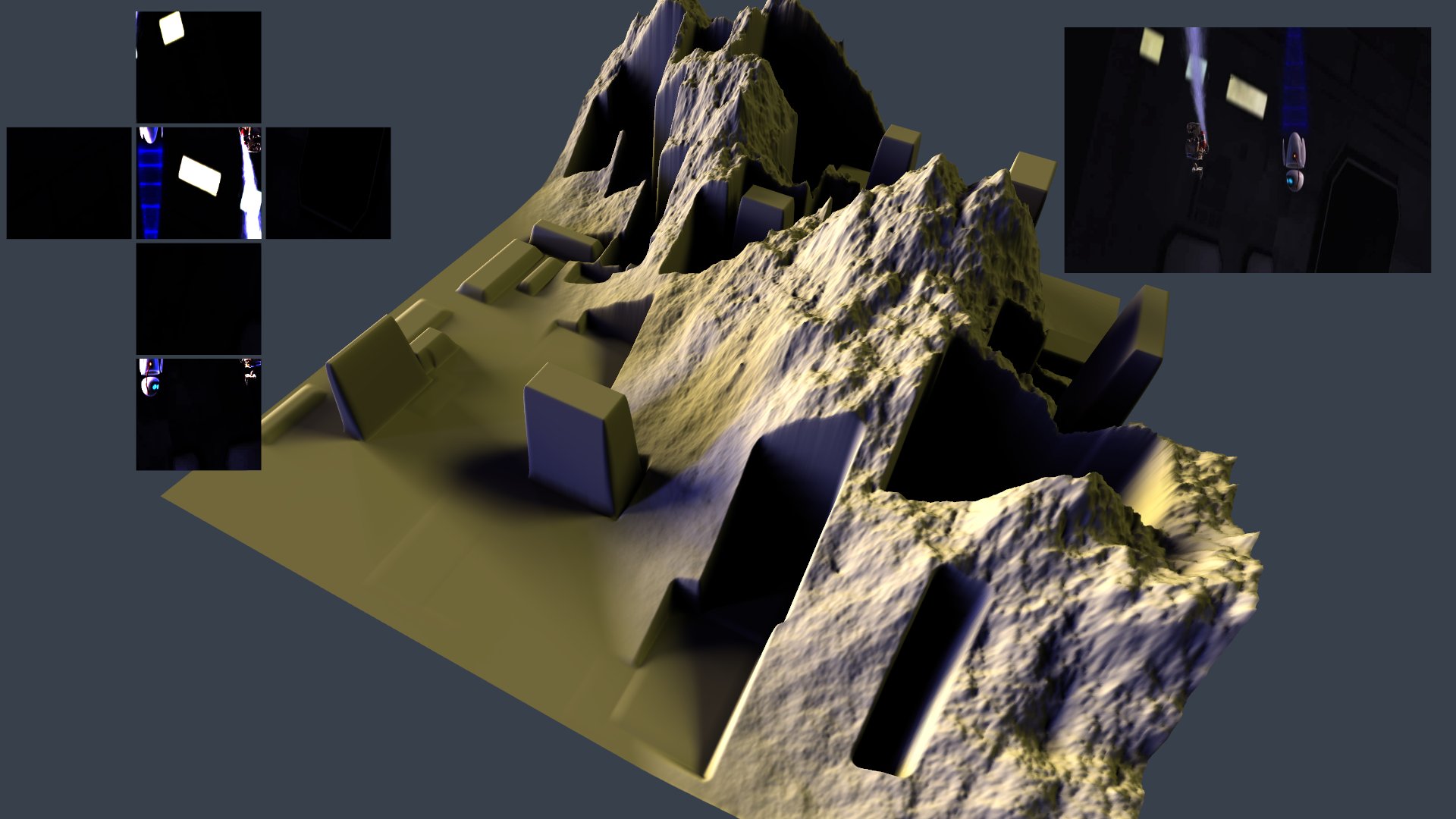 All went well, and after another while I had a solution to light high-resolution height fields under high-resolution HDR cube light maps. It took over 12k lines of mostly CUDA code. And it wasn't the kind of code you write hundreds of lines a day -- for most parts I had even analyzed the clock cycles the operations would take, and some parts had hand-tuned PTX assembly. (I was to realize later that going that deep with the implementation is not really worth the time for a scientific paper.)